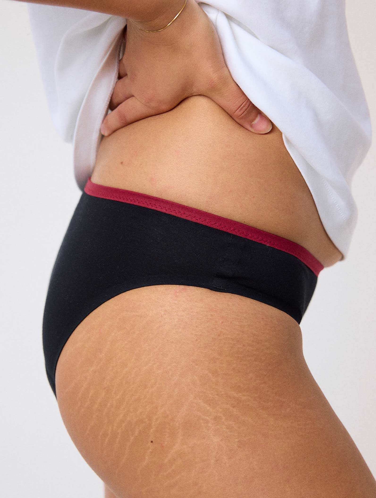 TIP: cotton panties for heavy flow are easily recognizable with their red elastic!