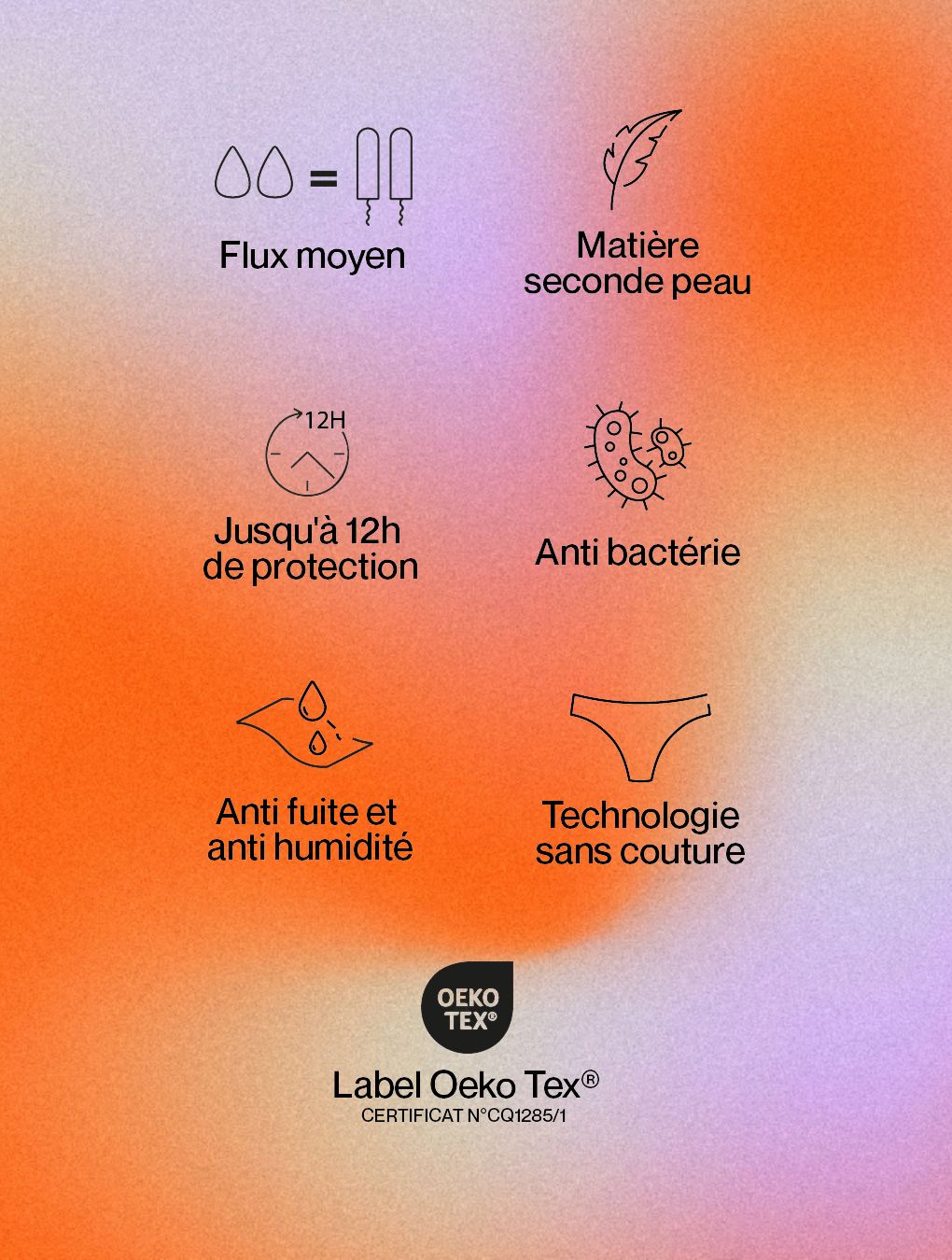 La culotte menstruelle invisible Hébé est certifiée OEKO-TEX® STANDARD 100 CQ1285/1.