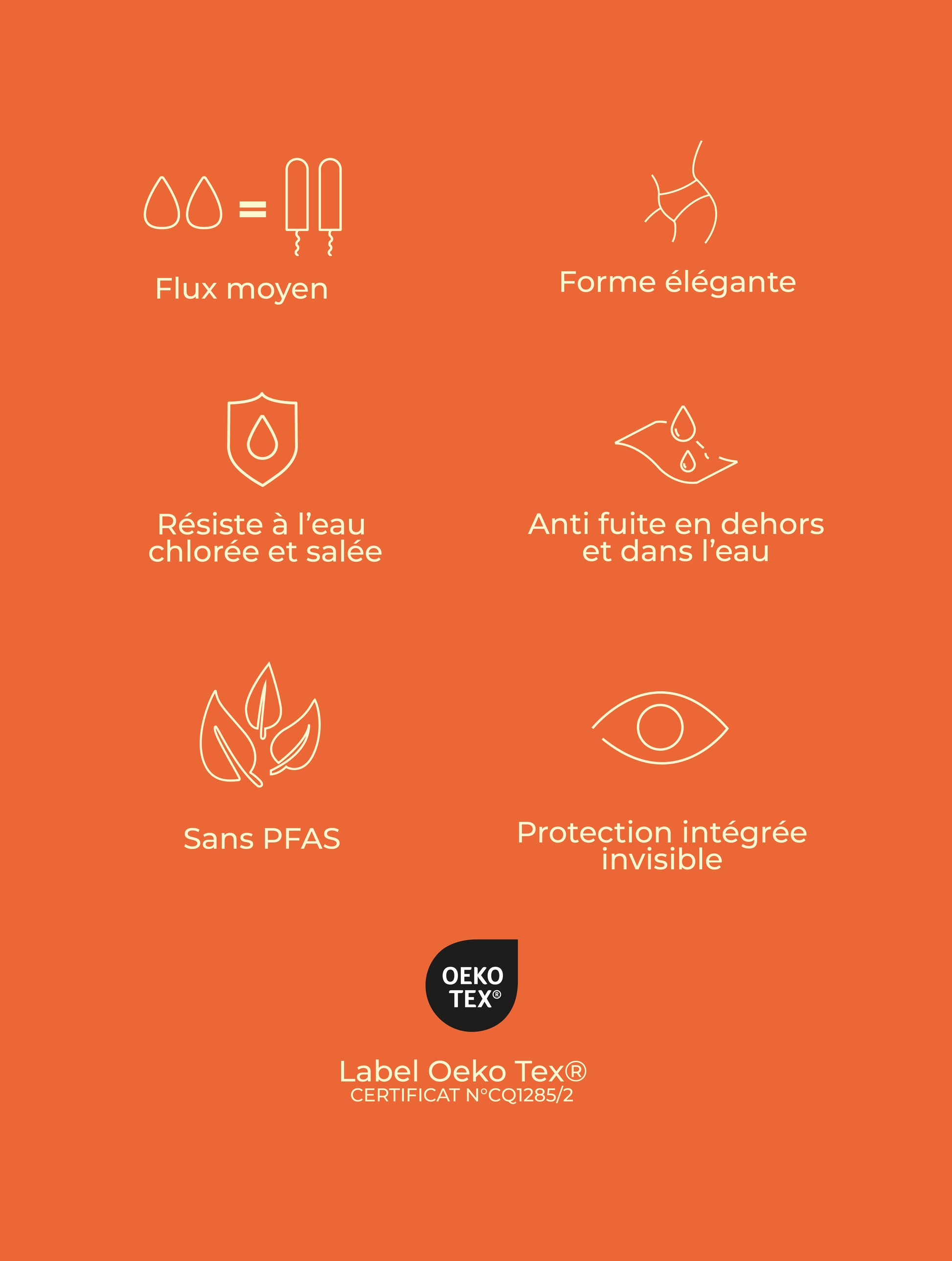Le maillot de bain menstruel Smoon est certifié OEKO-TEX® STANDARD 100 : certificat n°CQ 1285/2 .