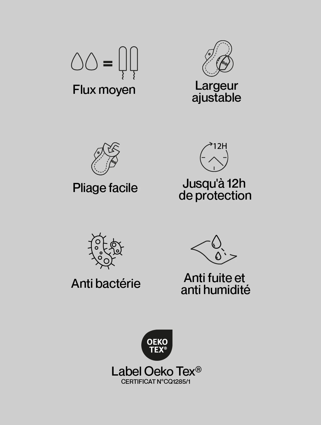 ✨ Performance optimale : Aussi absorbante que nos culottes menstruelles, elle retient l’équivalent de 2 tampons, sans fuite, ni odeur, ni sensation d’humidité.
